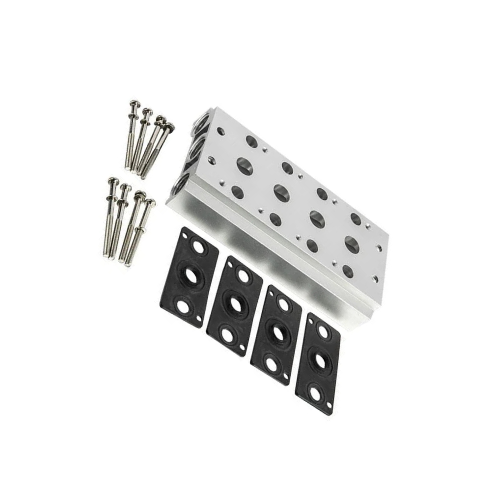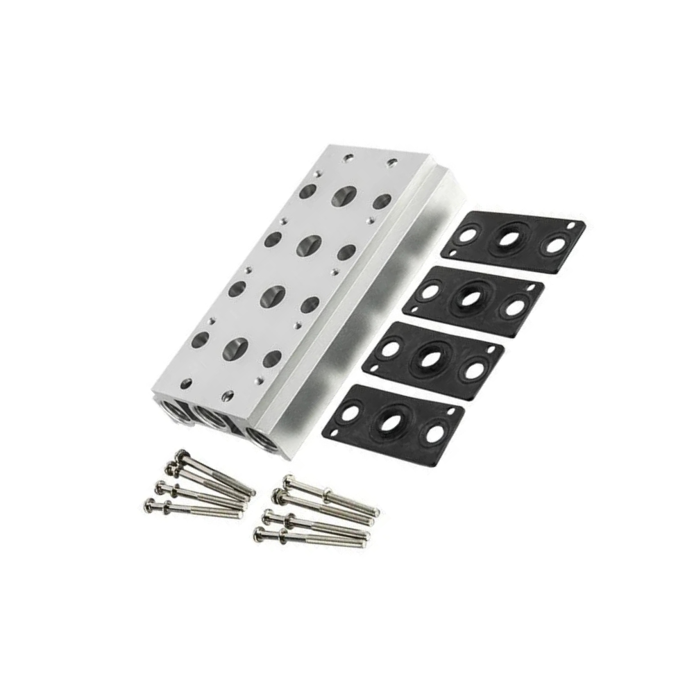 Alüminyum alaşımlı gövdesi sayesinde dayanıklıdır, bağlantı yüzeyleri O-ring desteklidir ve sızdırmazlık üst düzeydedir. 2’li, 4’lü, 6’lı, 8’li yuva seçenekleriyle sunulur ve özellikle 3V200 serisi valflerle tam uyum sağlar.